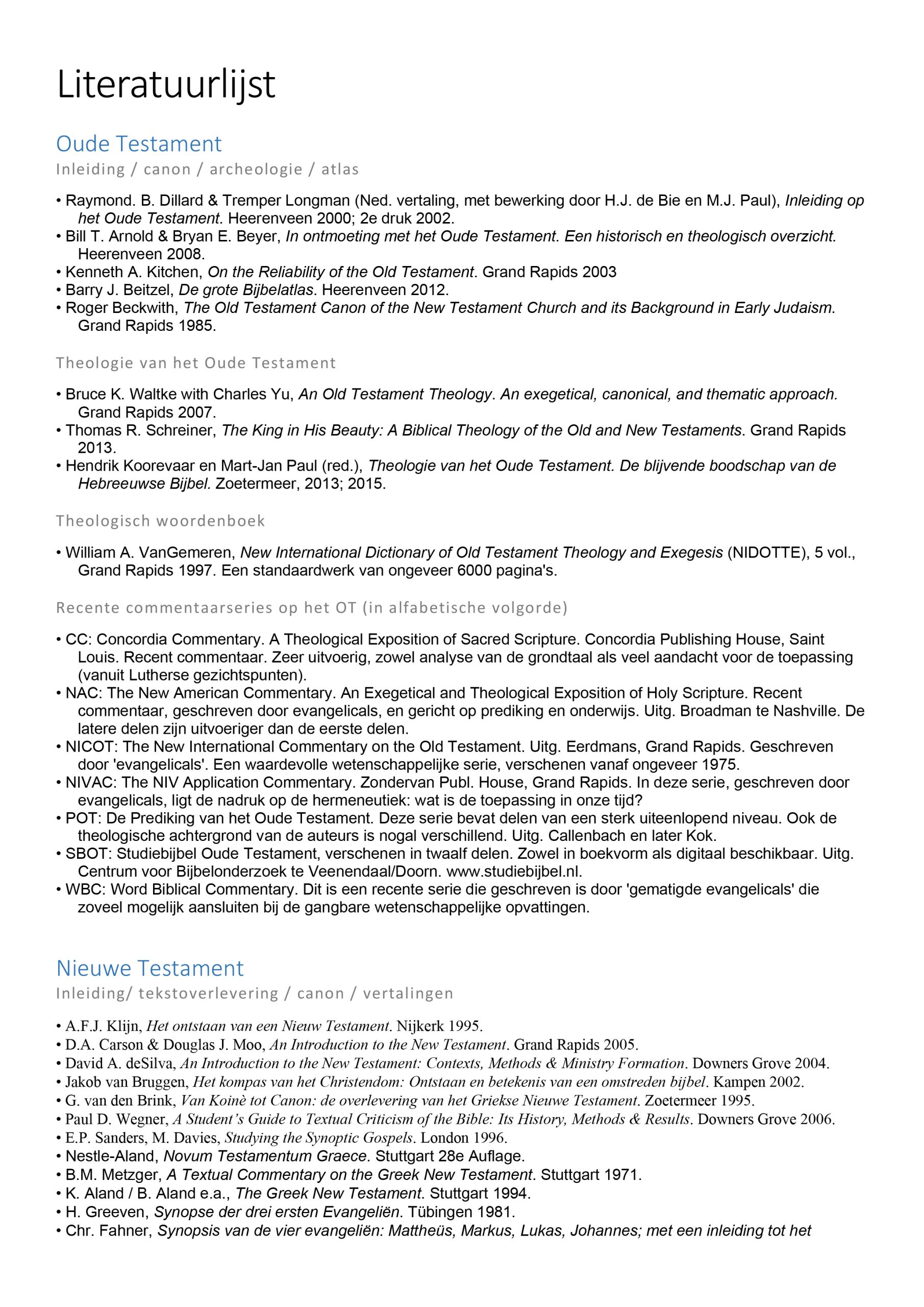 Deze lijst is bedoeld voor theologiestudenten en predikanten om zich te o...